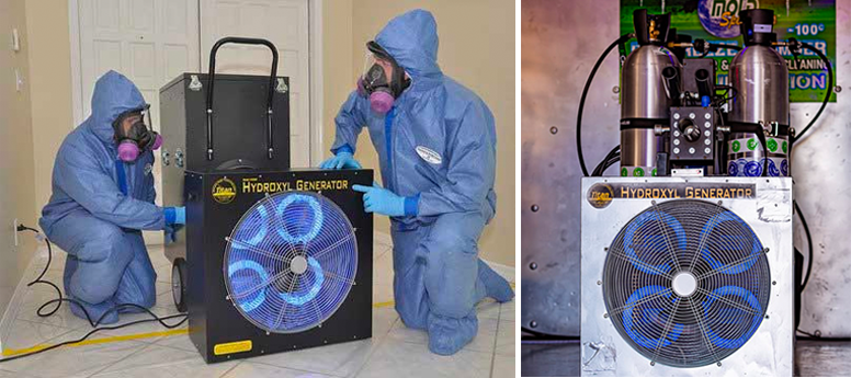 A hydroxyl generator and maximizer are innovative tools to refresh the air, remove odors and kill germs. Hydroxyl generators harness existing water vapor in the atmosphere to create hydroxyl radicals. The maximizer is placed behind the generator to increase the direct intake of humidity, which increases the hydroxyl production. No ozone is produced during the process, making it 100 percent safe to run in areas where your family or workers are.