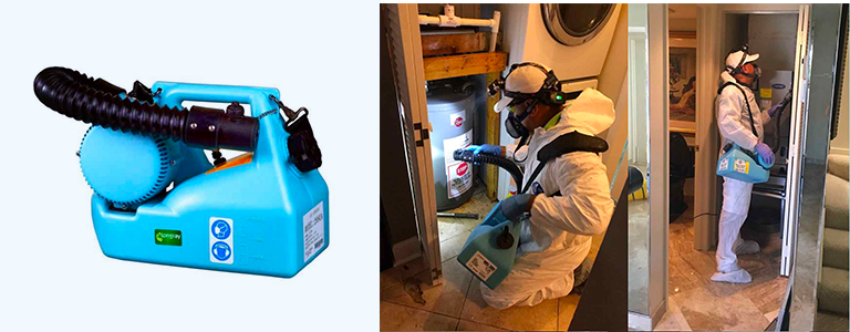 Germs, bacteria, viruses and minute particles on contaminated surfaces, such as in central A/C units, vents, attics and crawl spaces, are no match for Miami Mold Specialists Carryall ULV Particle Fogger. When performing a disinfection, we use our proprietary AirBiotics cleaning solution that is 100 percent organic and contains zero volatile organic compounds.